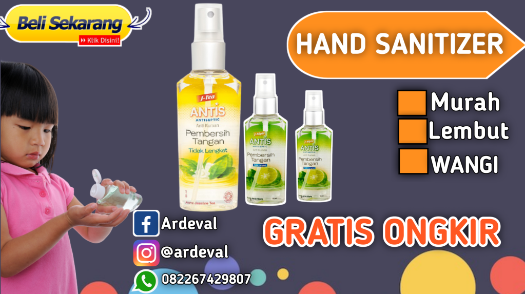 Tangan adalah bagian tubuh yang sangat rentan menjadi tempat bersarangnya virus dan bakteri. Saat melakukan berbagai aktivitas, secara sadar maupun tidak sadar tangan sering kali berinteraksi dengan hal-hal yang dapat menebarkan kontaminasi misalnya membuka pintu, memegang tangga dan berjabat tangan. Sayangnya, di masa globalisasi seperti sekarang, kebanyakan orang banyak mengejar sesuatu yang lebih mudah dan praktis salah satunya yaitu penggunaan hand sanitizer seperti J-Tea Antis ini yang diprodukis oleh ARDEVAL. Ketika sedang terburu-buru, kadang untuk mencari sabun dan air untuk mencuci tanganpun terasa sungkan, akhirnya dipilihlah hand sanitizer untuk membersihkantangan.